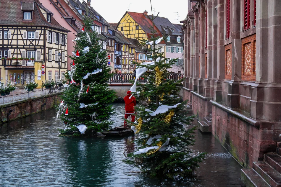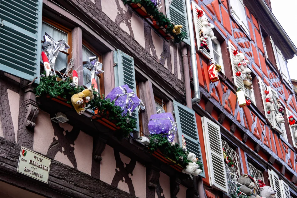 科爾馬的聖誕市集也頗負盛名,雖然規模遠不如史特拉斯堡,但搭配童話世界般的街道與法國人超厲害的建築聖誕裝飾,跟史特拉斯堡比其實也不遜色!至於景點嘛…我來的時候天氣超爛,是那種傘拿不穩而且細雨不斷的鳥天氣,只能狼狽地在街道隨意亂晃。