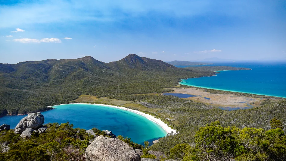 酒杯灣(Wineglass Bay)位於澳洲塔斯馬尼亞東岸的菲欣納國家公園(Freycinet National Park),跟中部的搖籃山並列兩大塔斯馬尼亞觀光勝地,搖籃山有名的是鴿子湖與高山健行,酒杯灣則是形狀特殊、名列 CNN 與澳洲網站 Traveller 全球十大沙灘。