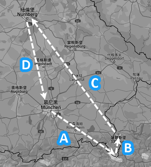 - Day 9–11:前兩天住薩爾斯堡,第十一天搭車到紐倫堡