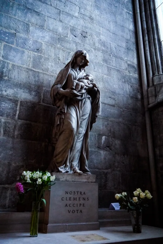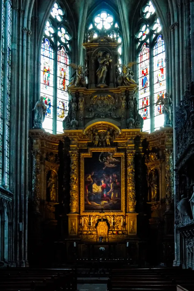 除了宏偉的建築,教堂內部也頗為可觀,除了哥德建築必備的肋架、玫瑰窗等等,還有放了為數頗多的聖人雕像跟一個優雅的石梯,蠻值得進去看看的。