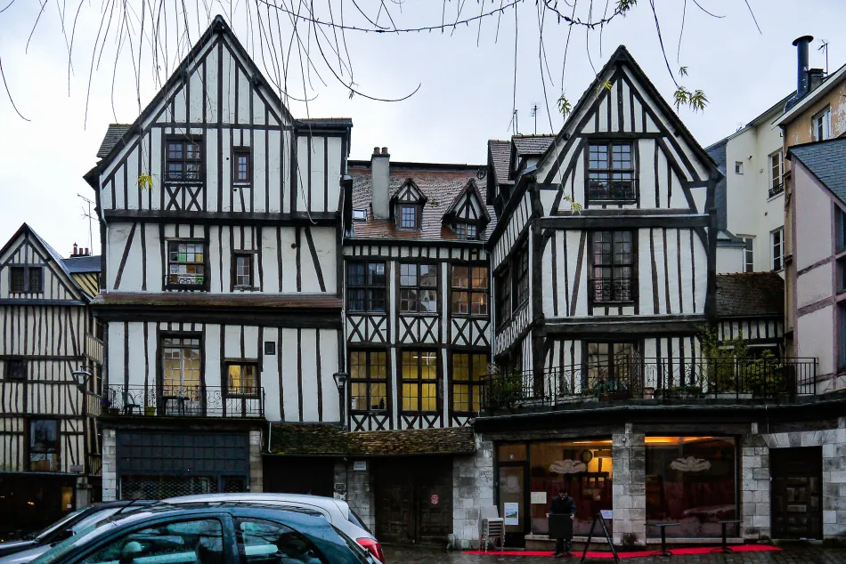 盧昂也有許多木質骨架的建築,同屬諾曼第的聖米歇爾山也可以欣賞類似的建築物,舊城區必看的建築是大時鐘 Le Gros-Horloge,就在 Rue du Gros Horloge,這個鐘金碧輝煌、做工細緻,一定要來跟它合照。