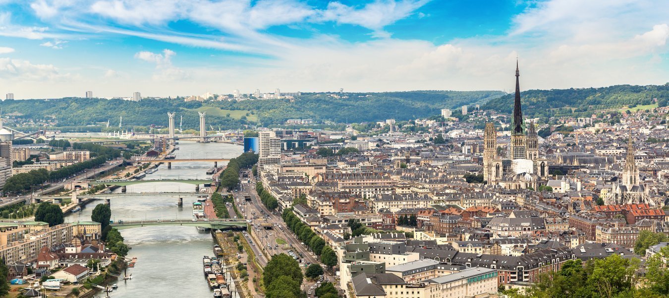 盧昂(Rouen)是法國北部大城,位於塞納河下游、巴黎西北方約120公里,自古以來就是塞納河沿岸的貿易重鎮跟諾曼第地區(Normandie)的政經中心,在法國歷史上也具有舉足輕重的地位,聖女貞德(Jeanne d’Arc/Jeanne la Pucelle)就是在1431年時於盧昂的舊市集廣場(Place du Vieux Marché)被處以火刑。