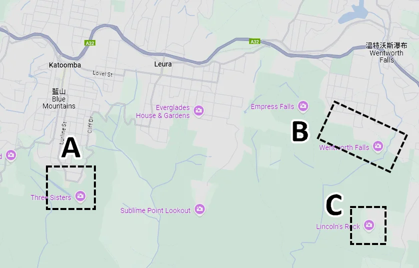 這些點我都去過了(延伸閱讀:藍山國家公園一日遊遊記),這篇介紹的是比較冷門的 Wentworth Falls Track,傍晚時還是會去回聲角欣賞三姊妹岩,最後到 Lincoln ‘s Rock 看日落,文章目錄: