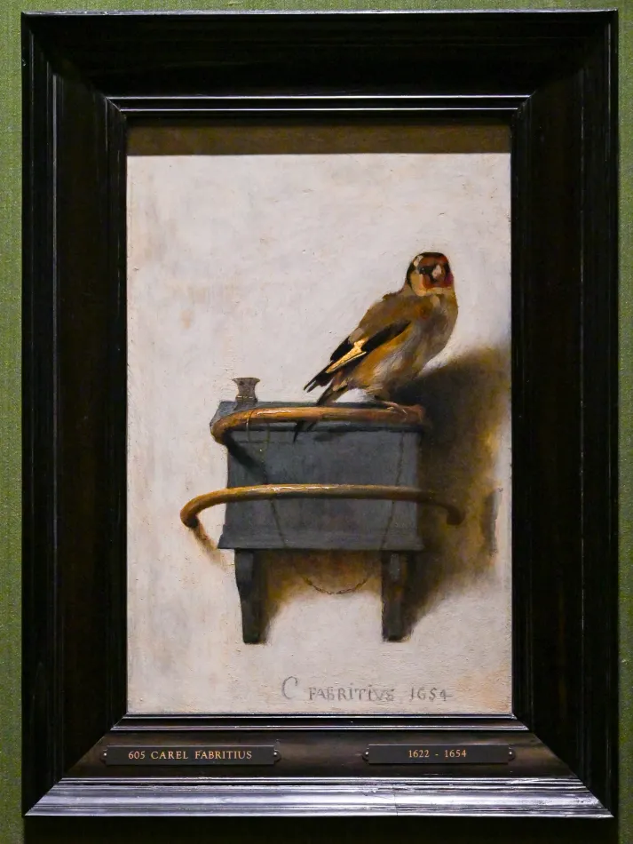 《The Goldfinch》也是一幅很荷蘭的作品,主角是荷蘭家庭17世紀常見的寵物:金絲雀,畫家是 Carel Fabritius。這幅畫稱不上是曠世名作,不過我蠻愛其寫實畫風,推薦一下,可以仔細觀察金絲雀的細節。