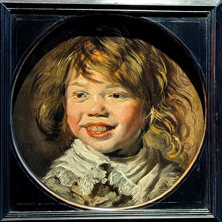 《Laughing Boy》是一幅很有趣的人物畫、莫瑞泰斯皇家美術館的種典藏品,不用猜這位小孩是誰…這是畫家 Frans Hals 憑空想像的,呈現他心目中開心的小孩該是什麼樣子,並沒有以誰為主角來作畫。