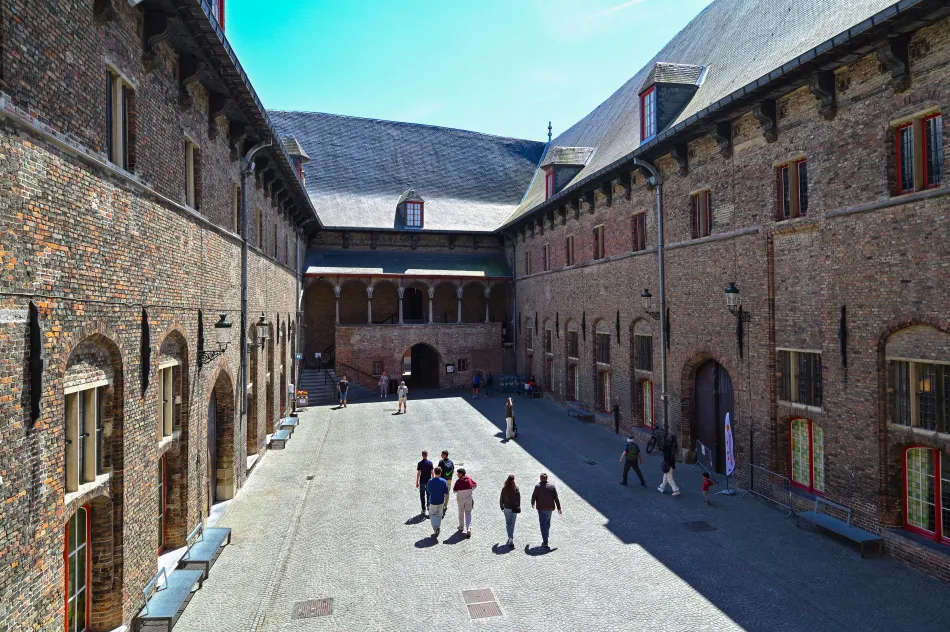 到鐘樓當然就要登頂遠眺布魯日市區古色古香的紅屋頂,入口在中庭,這個中庭很深、超過80公尺,以前是買賣布疋商品的市場。