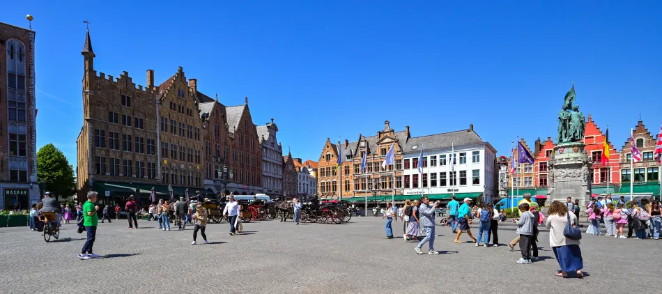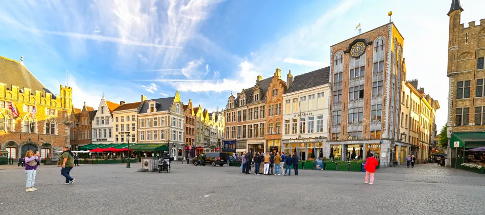 市集廣場(Markt/Market Square)的面積約100 x 100公尺,是布魯日舉辦大型慶典跟行刑的地點、最主要的廣場,除了本文介紹的布魯日鐘樓與歷史博物館,周遭的建築也很有看頭,非常值得細細欣賞,特別是低地國特有的階梯狀山形牆立面。