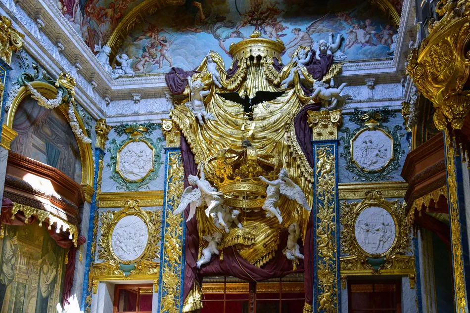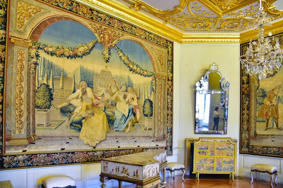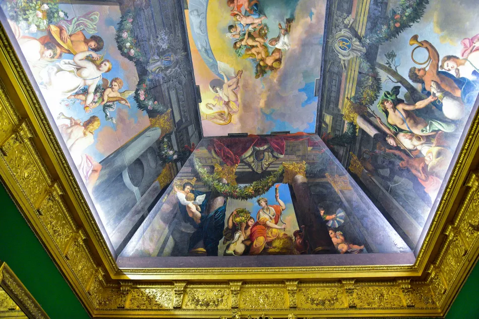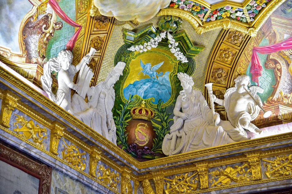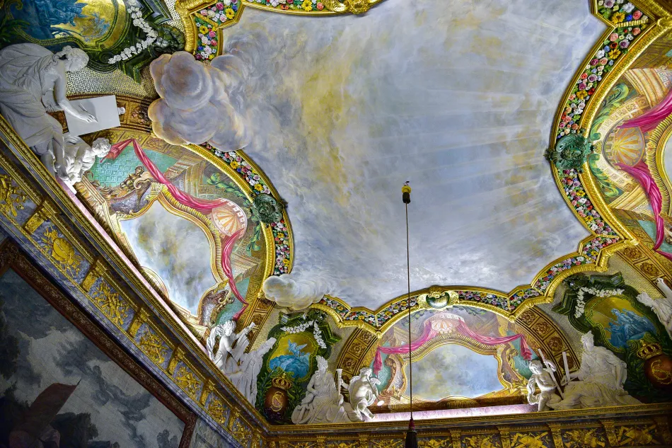 更衣間(Dressing Room):第一個展間,天花板壁畫的主角是維納斯,暗示這間房間的用途,國王辦公的地方絕對不可能出現以維納斯為主題的裝飾