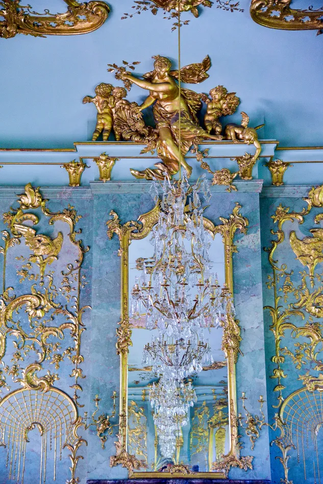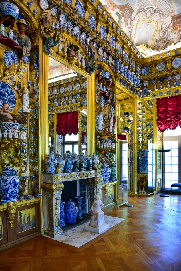 瓷器展間:在腓特烈二世開始於這邊展示瓷器收藏之後,這展間就被更名為瓷器展間,以砂岩製作的壁爐是原作,展間擺放超多瓷器,大多是來自中國,在當時可是價值連城!