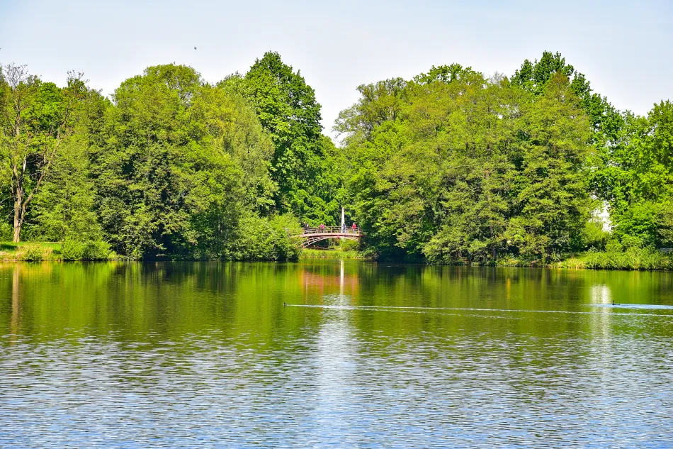 夏洛登堡宮的花園占地不大、比無憂宮還小,參觀時間約半小時,春天造訪時的景色還不錯,種了蠻多鬱金香的,還有一個大池塘,只是…我懶得走那麼遠,天氣超熱….我只想喝啤酒,還好下公車的路口旁就有一家柏林當地的釀酒廠經營的啤酒餐廳。