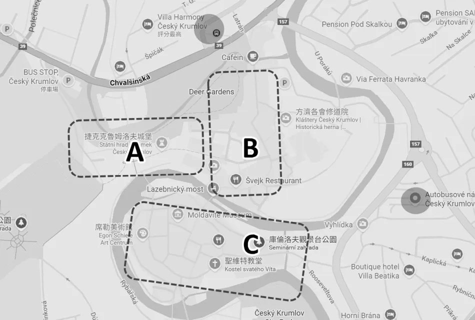 庫倫洛夫一日遊很好安拍,其遊玩區域蠻小的,主要為內城區、Latrán 區與庫倫洛夫城堡。內城區是重點城區、庫倫洛夫城堡則是這個小鎮的象徵,如果只有半天建議將時間放在這兩個區域。