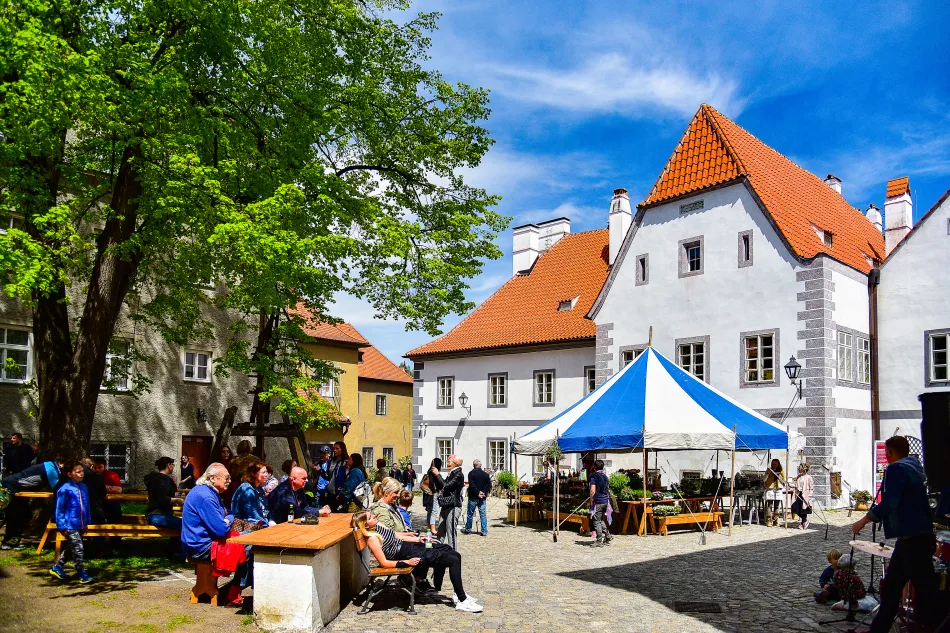 如果在5–9月造訪,可以到紅門對面小巷子盡頭的廣場走走,旺季的時候還蠻熱鬧的,那邊也有一間修道院:方濟各會修道院(Kláštery Český Krumlov),我10月初來的時候超冷清!