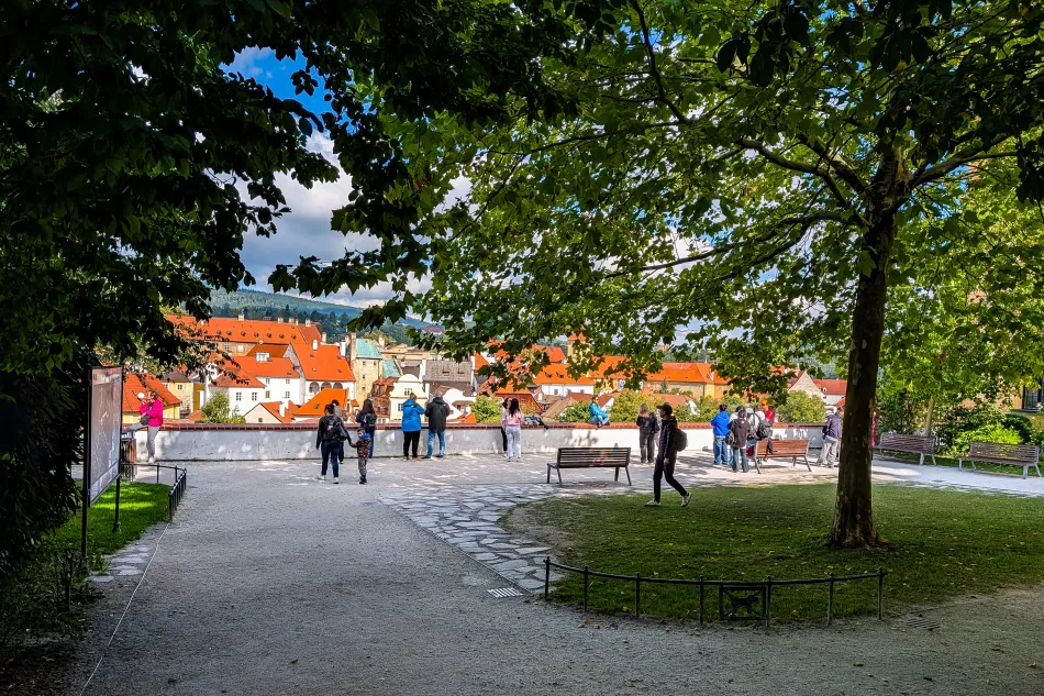 Seminární zahrada 公園跟城堡斗篷橋附近的觀景台是庫倫洛夫兩大熱門眺望點,旺季時絕對人滿為患,我曾經在10月初造訪、人潮不至於太可怕。很久之前我曾在車站步行到內城區邊緣的停車場找到不錯的拍攝點,最近去的時候已經找不到那個視野,可能是被樹遮蔽了。