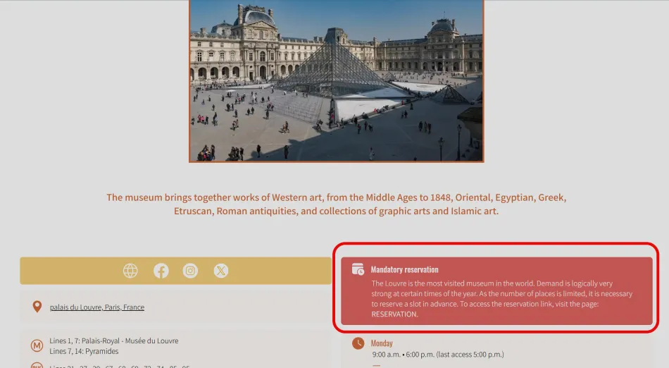 使用時要注意一點:是否需要預約,凡爾賽宮、羅浮宮等等熱門景點都需要預約,強烈建議看一下景點清單中對於個別景點的使用說明!