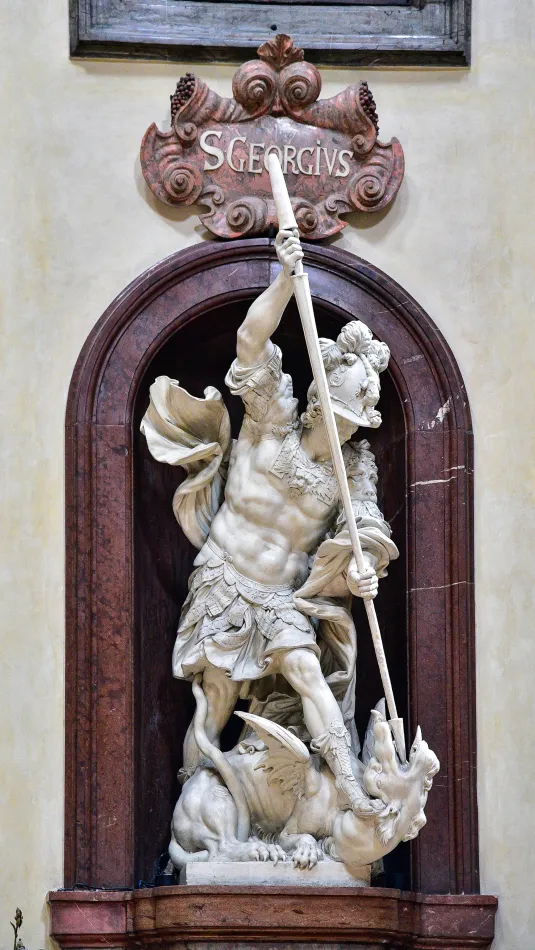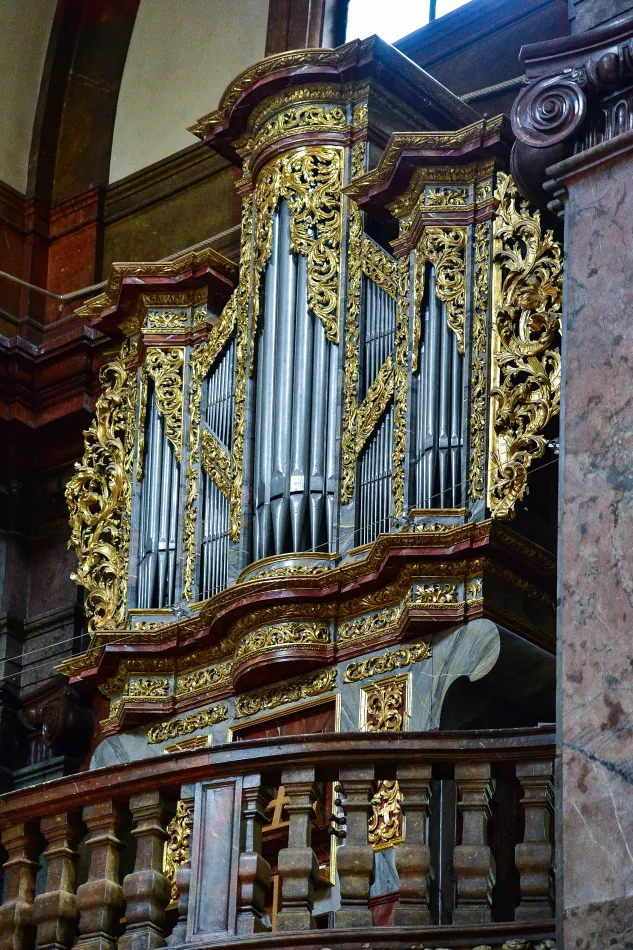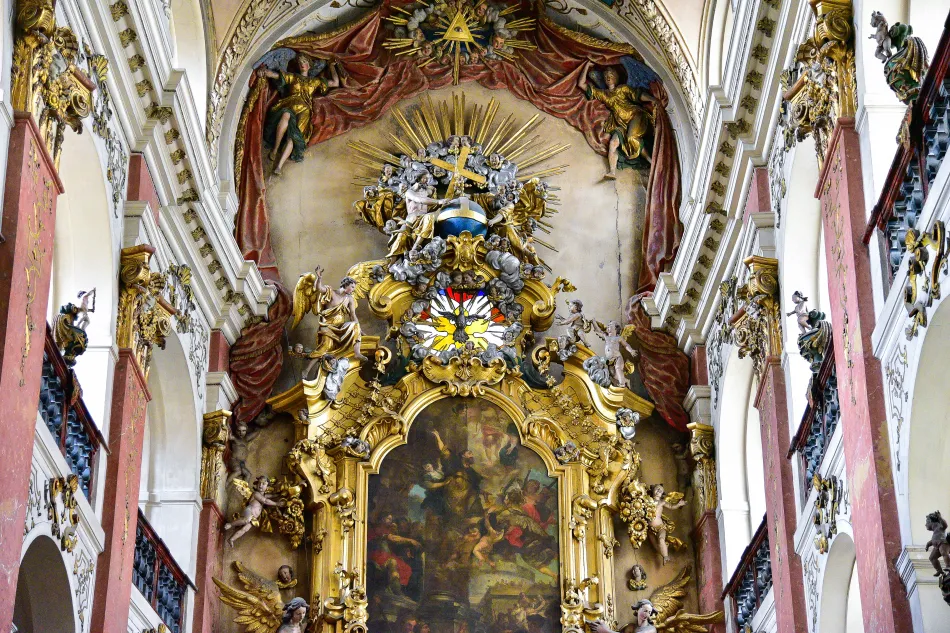 內部最引人注目的就是位於兩側超過20祭壇擺放的大型油畫,都是當代傑作,畫家為 Václav Vavřinec Reiner、Petr Brandl 等人,而管風琴也可追朔到1702年,是年代久遠的樂器。