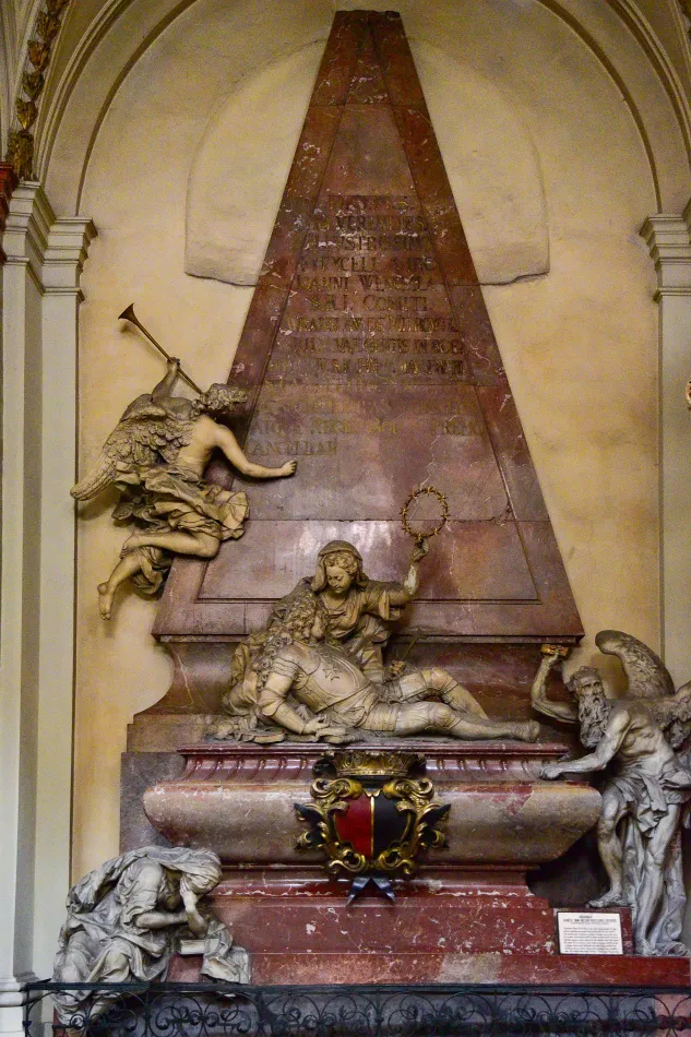 這教堂除了內部美輪美奐的裝潢,也有不少傳說,例如有個小偷想偷竊聖母瑪利亞的雕刻,被聖母一手抓住、不得動彈,神父發現之後只好割掉他的手;內部還有存放 Count Vratislav of Mitrovice 華麗的巴洛克棺木,據說他被火化時根本沒死透…總之…布拉格有各種光怪陸離的傳說。