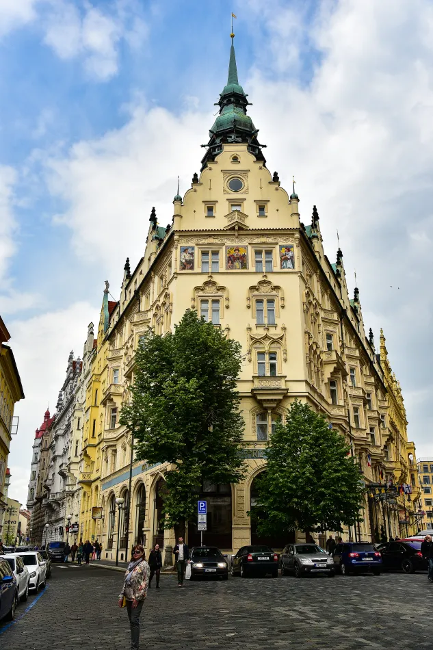 市民會館現行的外觀是於1911年完工、屬於新藝術風格,當初動員了多位捷克知名藝術家、建築家支援(包含慕夏),1918年的捷克斯洛伐克獨立也是在此宣布的。內外裝潢都非常富麗堂皇,目前作為音樂廳跟展覽廳,也是欣賞慕夏作品的好地方。