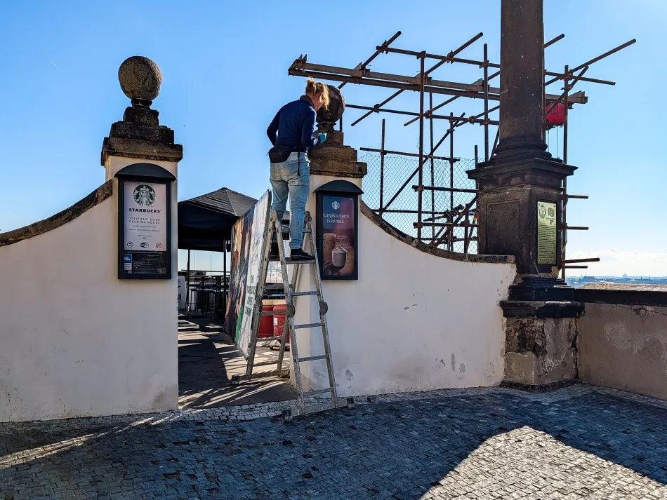 城堡廣場算是布拉格城堡的門戶,遊客絡繹不絕,有平台可以眺望市區,但會被不少樹木擋住視線。這邊有一間超熱門的星巴克,過往是拍照熱點,最近去的時候人潮少多了。個人覺得…城堡廣場一帶是必經之地,但是景緻不如等等介紹的舊城堡階梯與聖瓦茨拉夫葡萄園一帶。