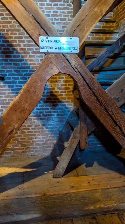 - 西教堂鐘樓共分三層,第一層是採用荷蘭出產的磚,第二層是來自德國的砂岩,最上層是木頭