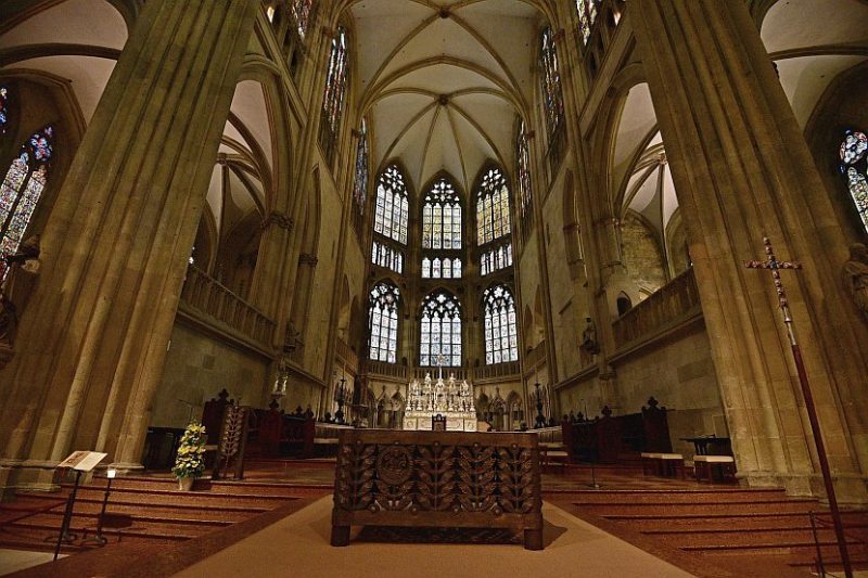 雷根斯堡主教座堂內部參觀時間約半小時,可先索取英文簡介,教堂內超昏暗、很難拍,重點不外乎彩繪玻璃、哥德樣式建築、各種石雕,讓我印象最深刻的是彩繪玻璃。
