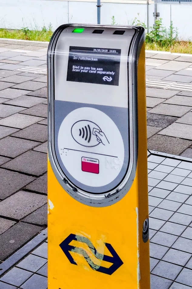 最容易忘記過卡的其實是…火車站。阿姆斯特丹、海牙、烏特勒支等等大站,進出火車月台都要通過閘門、一定會過卡,但是如果到郊區小鎮(例如:桑斯安斯),那邊的車站可能沒有閘門、只設立感應柱,很容易忽略。在沒有設立閘門的小站,如果要使用信用卡支付車資,一定要記得過卡!