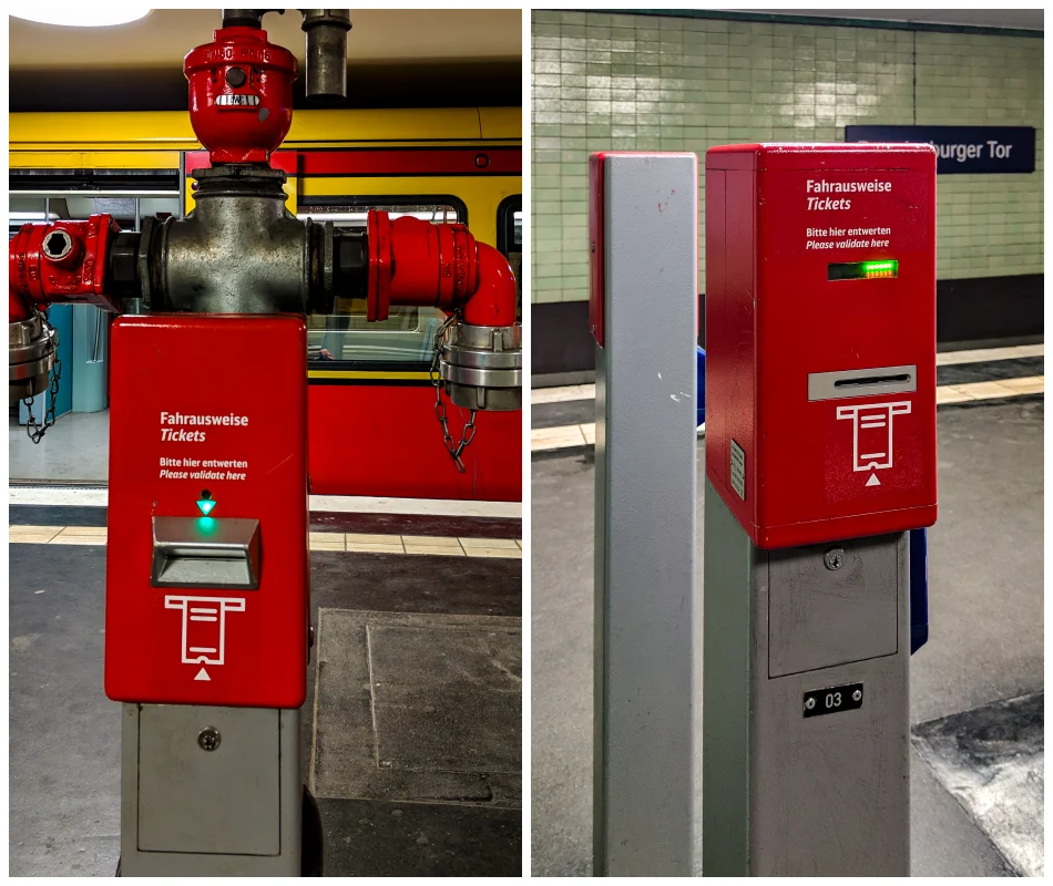 跟德國其他多數地方一樣,車票上沒印上使用日期的話算是無效車票,持這種車票上車被查到要罰錢。大部分的車票在搭乘前都需要先在打印機蓋上時間戳記,這機器很顯眼、不會錯過,而且車票上也很明確的標出打印區域。