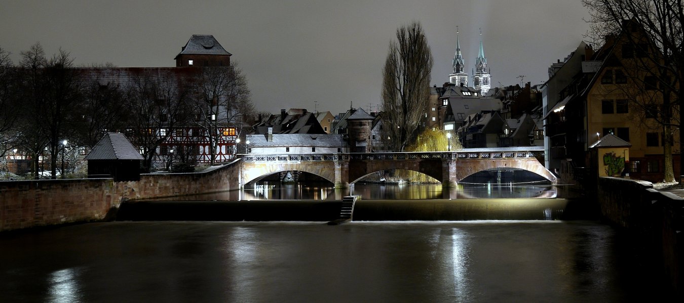 紐倫堡舊城區被佩格尼茨河貫穿(Pegnitz,河名源自古日耳曼語,意為流動的水),紐倫堡城堡周遭逛完後可以從 Weißgerbergasse 走去河邊旁 Maxpl 的吊橋 Kettensteg 拍攝 Maxbrücke,拍完之後再走去 Maxbrücke 拍劊子手之屋(Henkerhaus)跟周遭的古老橋梁,最後走上橋梁到河中小島的 Trödelmarkt 逛一下,再走回主廣場,路線很順暢。這區域充滿古都風情又可拍河邊倒影,是我必訪的紐倫堡景點。