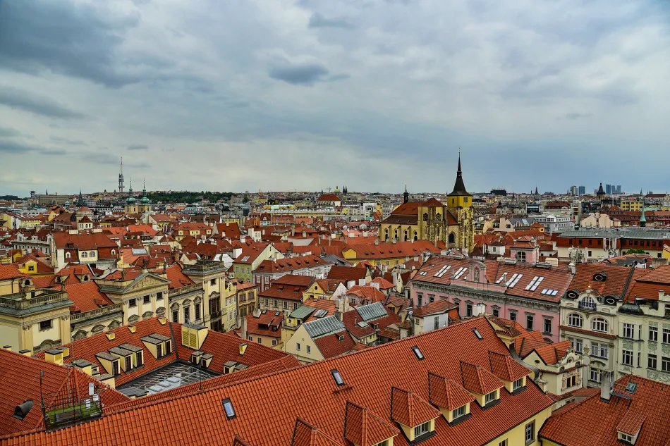 布拉格舊市政廳的觀景台可欣賞風景超優美的布拉格天際線。要至市政廳塔樓頂部得先由天文鐘旁的廣門進去,沿著指示到樓上購票,然後搭電梯或沿著螺旋步道至頂樓。身為百塔之城,布拉格有不少塔樓可以欣賞美輪美奐的城市天際線,但我最推薦的就是舊市政廳塔樓跟佩特任瞭望塔,是很多布拉格美照的拍攝點。