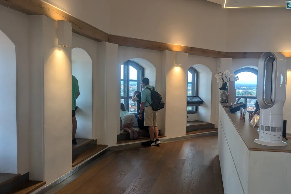 另一個值得參觀的就是教堂南塔的觀景台(開放時間與費用請參考官網說明),參觀方式很簡單,購票之後排隊入場,進去後先走一小段樓梯到電梯,再搭乘電梯到觀景台。觀景台區域是室內,而且沒有設置冷氣,夏天很悶。