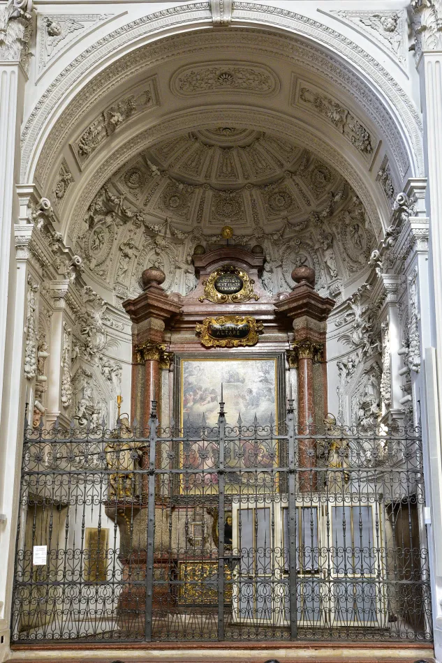除了這個棺木,其他就是很尋常的哥德樣式教堂會有的設計,例如大片彩繪玻璃、拱頂之類的,參觀時間估半小時綽綽有餘,真的想欣賞金碧輝煌的教堂就要到阿桑教堂。