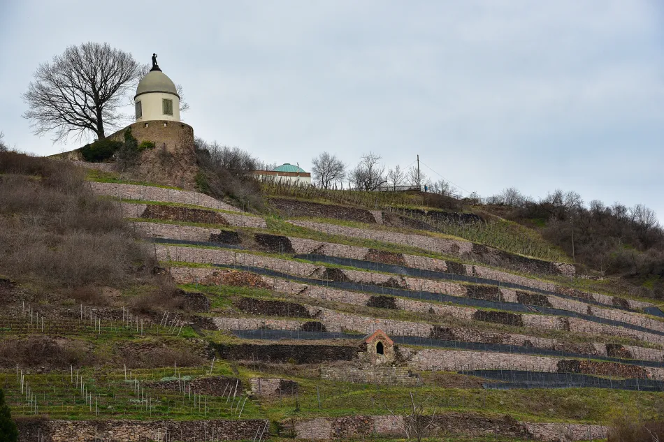 喝完酒之後就可以隨處逛逛了,我覺得這區域風景蠻不錯的,只是天色不好(天氣最好的那一天貢獻給巴斯泰橋了),而且還處於萬物蕭條的初春,葡萄園光禿禿的。基本上…就是沿著步道緩步到山丘上走走、不花太多時間,頂多30 –40分鐘吧。逛夠之後就該回車站了,這邊大致可停留1–1.5小時,夏天應該可待久一點。