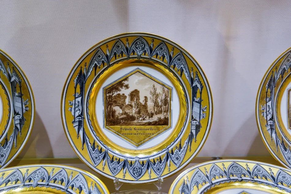 - 廢墟堡壘瓷器:銀器博物館的瓷器介紹以時間為軸、可以看到隨時代演進的瓷器風格變化。廢墟堡壘瓷器是要緬懷哈布斯堡王朝由瑞士偏鄉貴族崛起,成為主宰歐陸數百年發展的王朝!