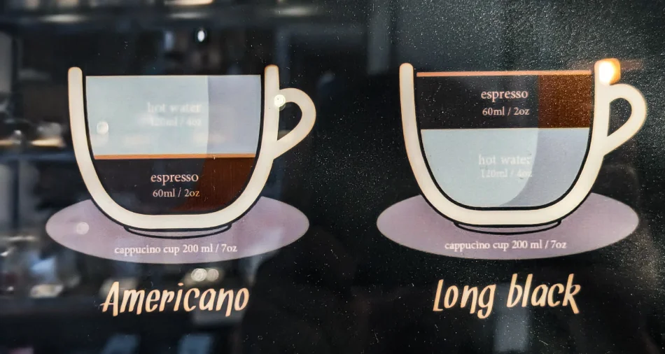 - Long Black 的咖啡口感更強,喝不習慣的話可以自己加點熱水