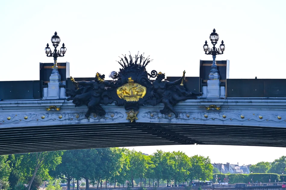 出發後往東會先經過的第一個地標是華麗的新藝術風格橋梁:亞歷山大三世橋,名字是為了向俄國沙皇亞歷山大三世致敬,搭船時可以好好欣賞上面金光閃閃的雕飾。