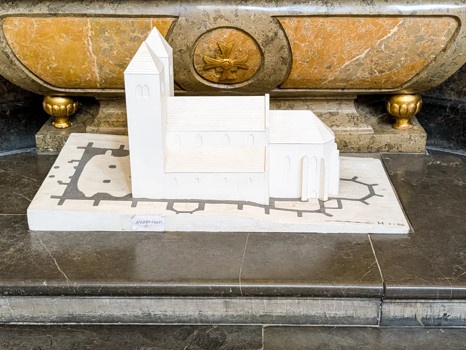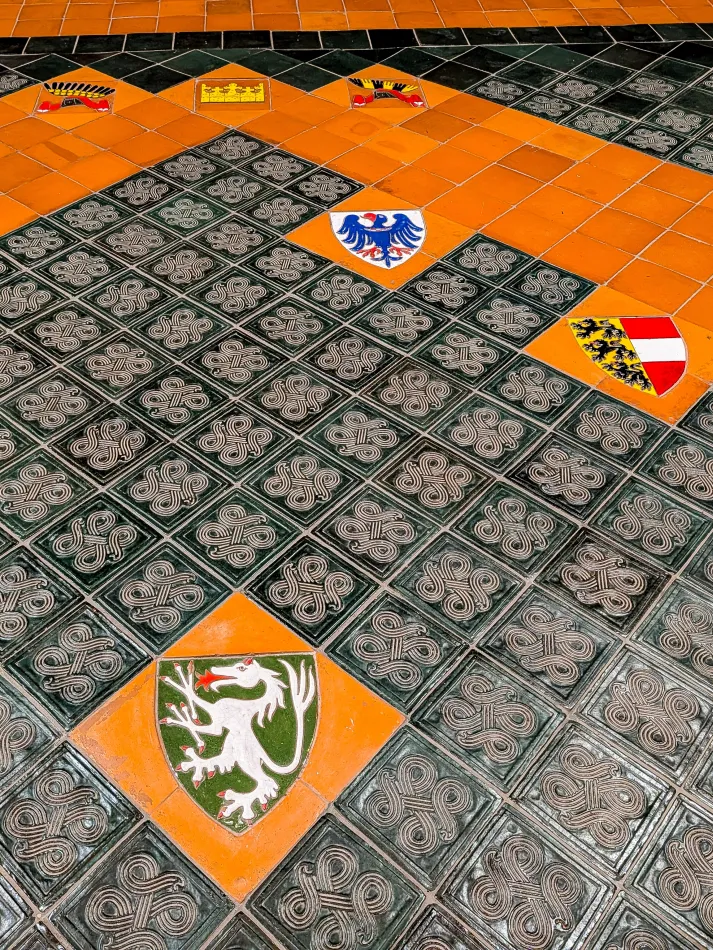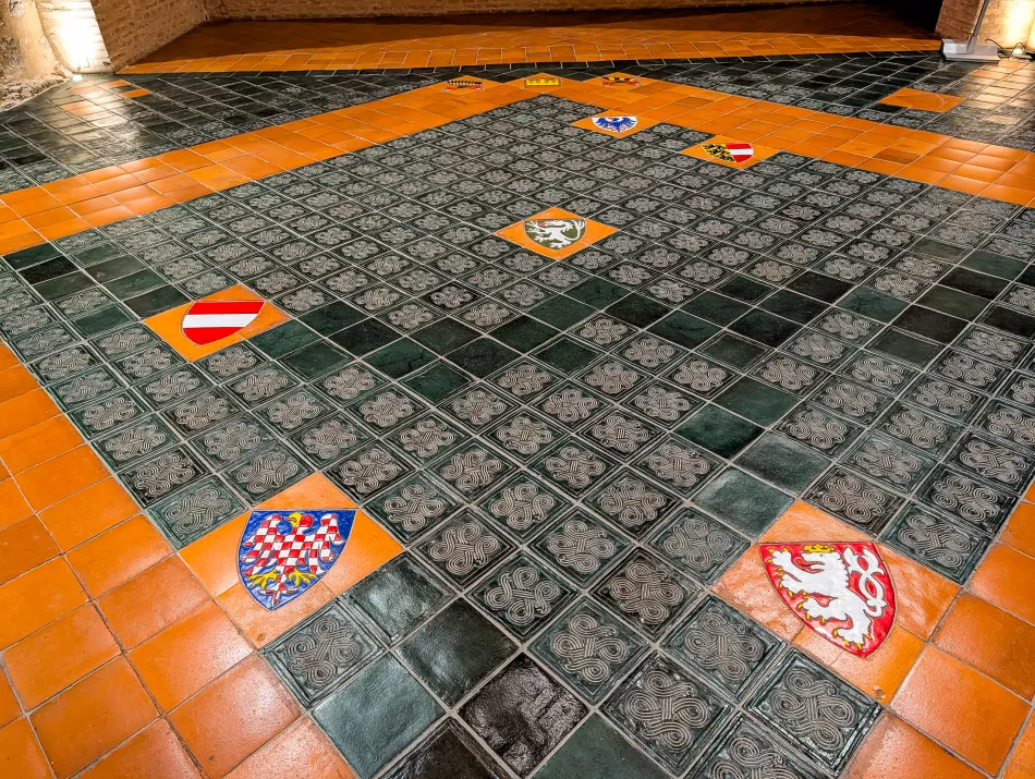 由觀景台下來之後會經過一個很像禮拜堂的區域,擺放了不少與摩拉維亞或統治者相關的紋章,可以嘗試看看認幾個,結束後如果沒打算參觀其他城堡付費區域就可以離開了!