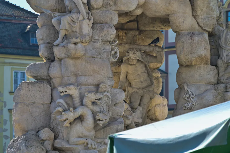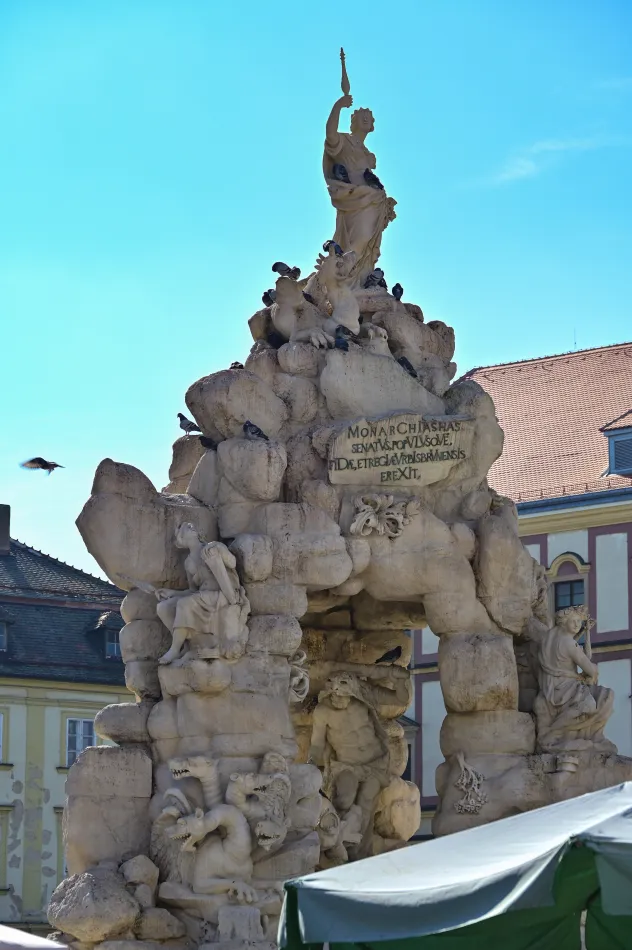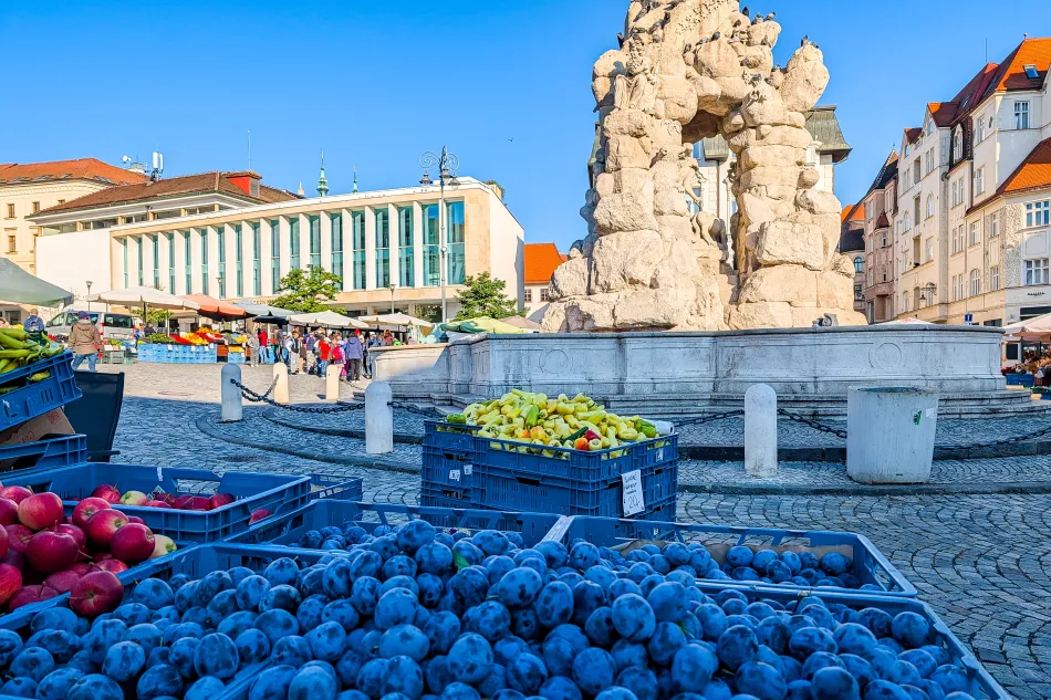 這個於17世紀末落成的巴洛克樣式的噴泉反映了過去神聖羅馬帝國時代的歐洲世界觀,有象徵歐洲的女神、大力士海克力斯(Heracles)、象徵波斯與希臘等地的雕像,是必拍的到此一遊地標,反正…到布爾諾也不可能錯過捲心菜市場。