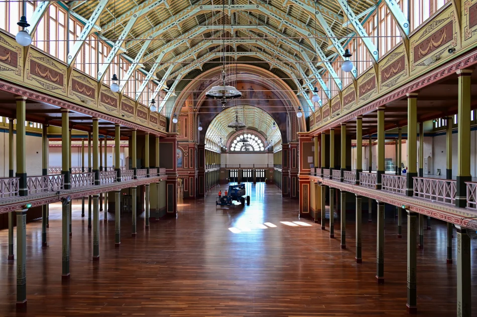 墨爾本皇家展覽館(Royal Exhibition Building,Google Map位置圖)坐落於卡爾頓區(Carlton)的卡爾頓花園(Carlton Garden),是墨爾本市區最典雅優美的建築跟必訪景點、澳洲第一個被選定為世界文化遺產的建築,也是每年十月舉辦的墨爾本殭屍大遊行(Melbourne Zombie Shuffle)的起始點。