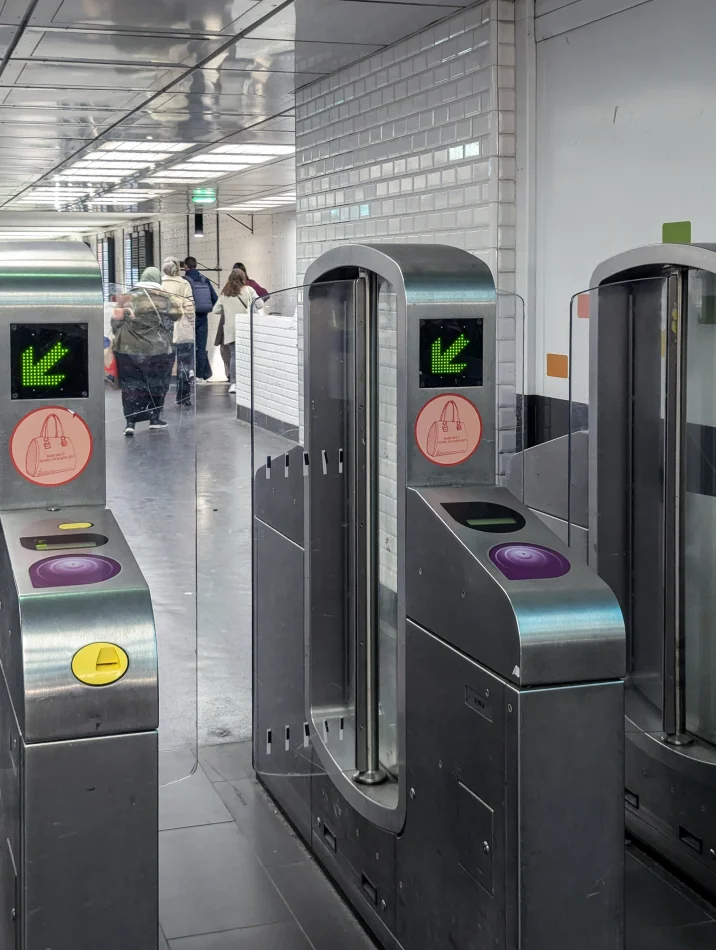 - 進站時要刷票過閘門,出站時不用、靠近閘門就會自動開啟,出口的法文是 Sortie