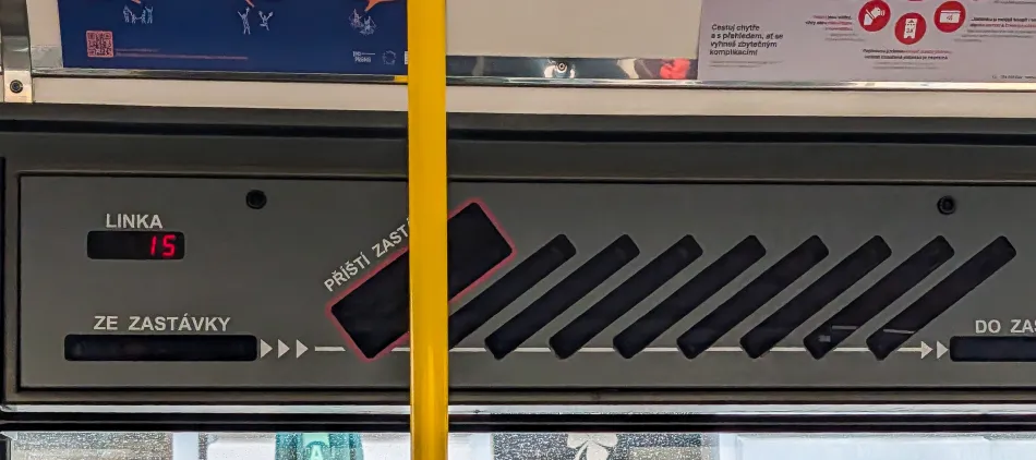 • 搭乘路面電車時請務必留意所在位置、不要下錯站,靠站時顯示的 Příští zast 是一個大陷阱