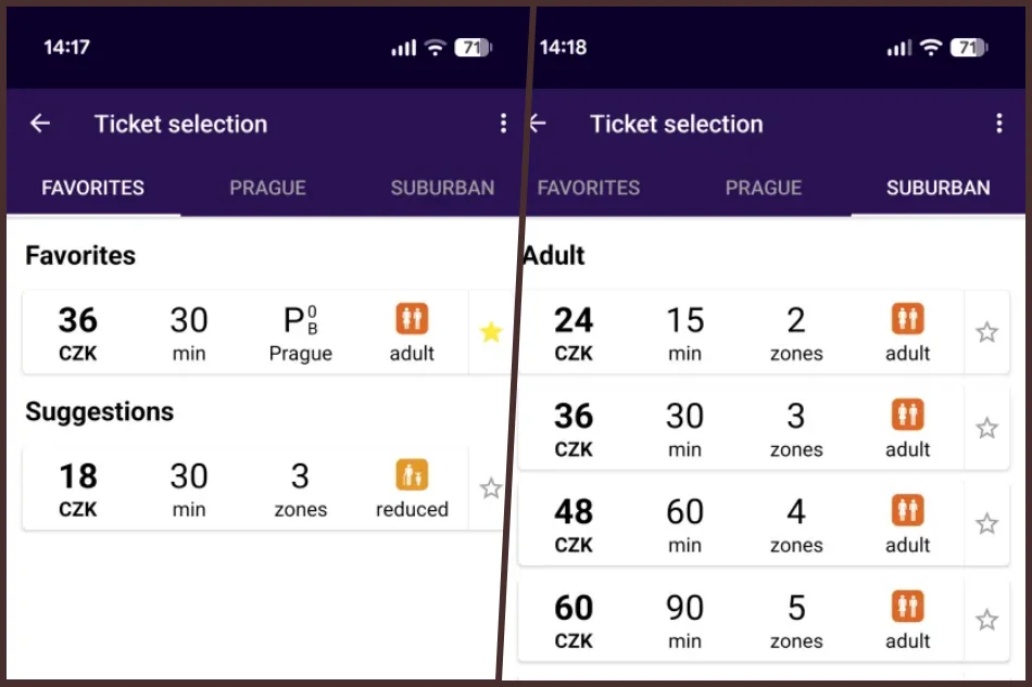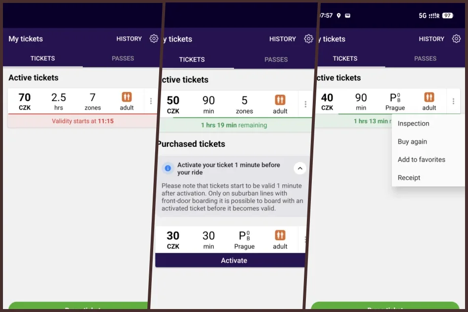 以上是使用 APP 購票特別需要注意的地方,基本上…還蠻簡單的,除了查詢路線再購買適合票種,也可以不查詢路線就直接買票,但要買對就是了,然後布拉格市區交通跟郊區交通的票券是在不同頁籤。遇到查票人員時,請出示 QR code 以供查驗,這個路徑做的比較隱晦!