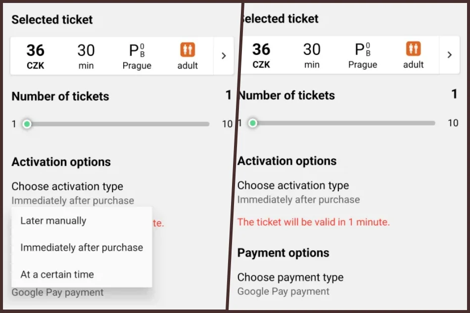 • 預約啟用:預約時間一到就成為有效車票,但完成購買時間跟預約啟用時間的間隔如果不到1分鐘,則車票在購買後1分鐘才成為有效車票