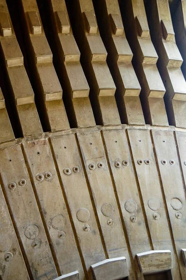- 歌劇院的結構都是靠扇形貝殼狀的屋頂支撐,沒有梁柱,貝殼結構是世界文化遺產的一部分,裡面部分木造建築就不是了,而且這些木造建築也不是烏松完成的!