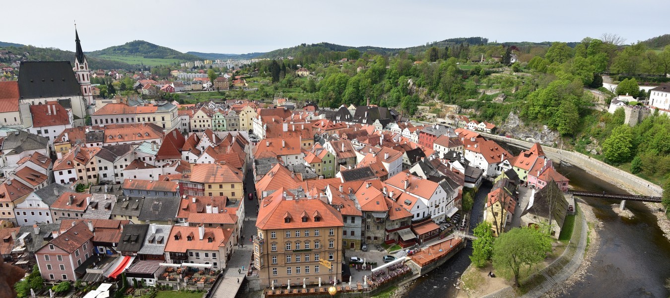 為庫倫洛夫城堡的彩繪塔是這小鎮的必去景點,登頂蠻簡單的,才162階。上面視野很好,中途有一層會簡介彩繪塔的發展,基本上就是這個塔經過多個階段的興建後總共有六層,地面層到第一層是最原始的建築,而第三層是文藝復興鐘樓的一部分。總之跟城堡眾多區域一樣,彩繪塔由13世紀開始經歷多次改建,樣式融合了最原始的哥德、中期的文藝復興跟晚期的巴洛克。