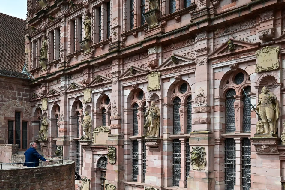 位於王座山半山腰處的海德堡城堡最早可以追溯到13世紀,這個城堡命運多厄,除了曾經遭受雷擊與祝融之災,也飽受戰火摧殘。三十年戰爭跟大同盟戰爭都對城堡造成不小的損害,特別是大同盟戰爭。這是由路易十四發起的戰事,法軍於撤退時放火燒毀城堡、避免它為敵軍所用,對城堡造成毀滅性的打擊。