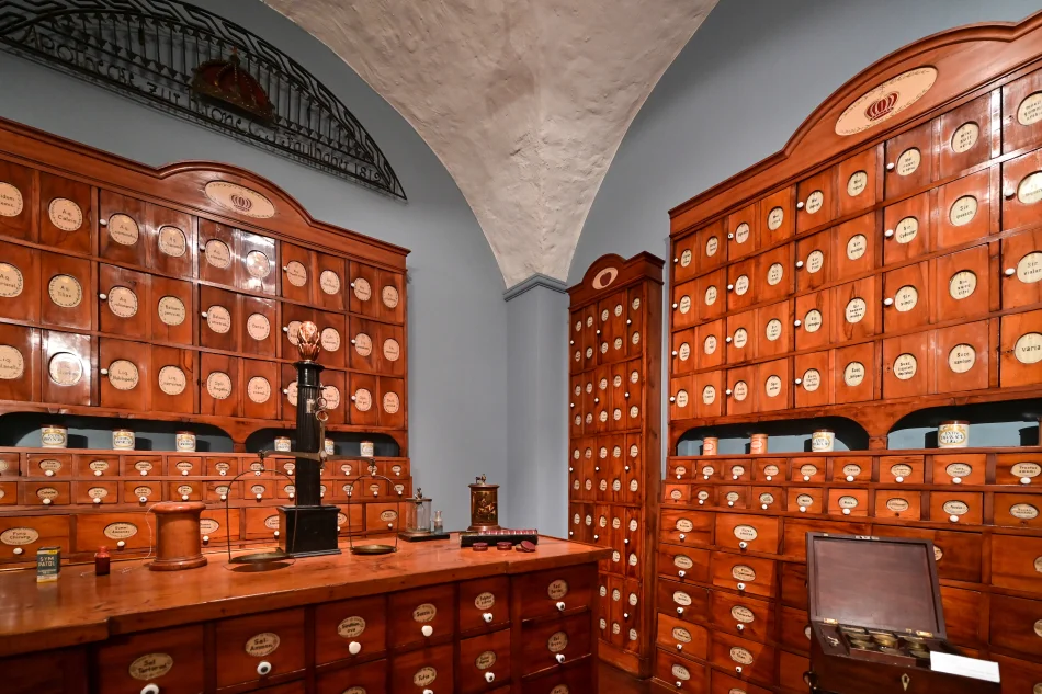 除了介紹如何由煉金、化學逐步發展成一個獨立的專業,也有展現各種藥材原型、過去藥房的擺設以及各種製藥器具,算是個還蠻有趣的景點,值得花半小時逛一下。英文導覽立牌的內容頗多,以下摘錄我比較有印象的:
