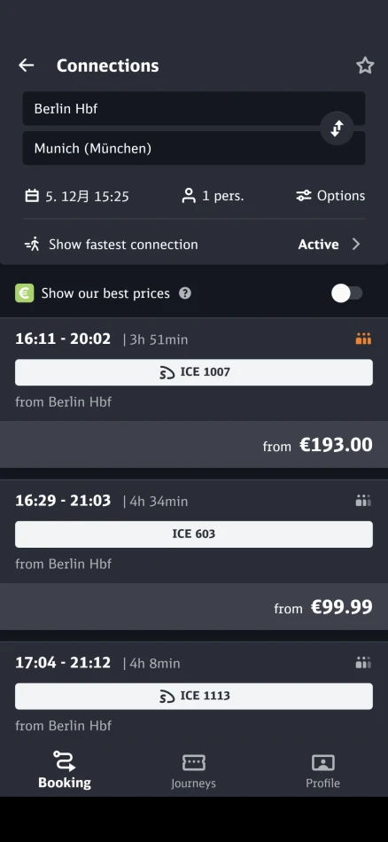 - 有時德鐵會變更某些機制,要先跟隨調整才可買票,例如…我急著要買慕尼黑到紐倫堡的車票,它卻要我再提供某些資料才可使用購買功能,等我用好後車已經開走了,所以呢…最好要買票前的1–2小時先試看看是否可以順利進到購買功能(不用真的買啦)