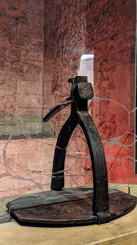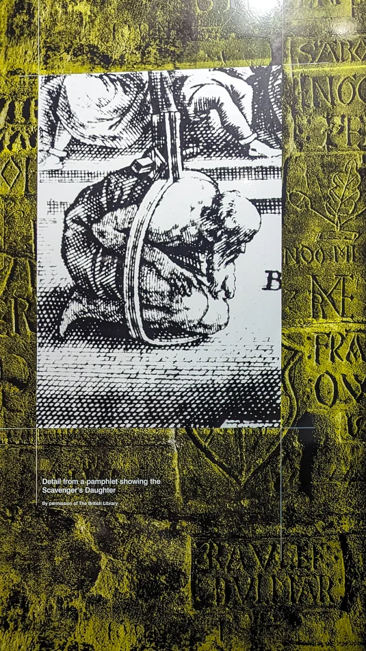 威克菲爾德塔(Wakefield Tower)在渡鴉區附近,展示的是…刑求方式。前面提到過往倫敦塔的主要用途之一是監獄,屈打成招司空見慣,有刑求展示區也不意外,這邊的展示可是以器具模型搭配圖文並茂的解說呢!