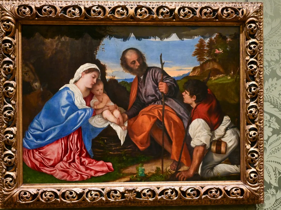 國家美術館也有不少堤香(Tizian)的作品,其實他不是會特別吸引我目光的畫家,只是這邊的卡拉瓦喬與達文西的畫作我沒很愛,就介紹一幅他的。雖說左邊的耶穌讓人難以忽視,中間的聖若瑟(聖母瑪利亞的丈夫,耶穌名義上的父親)也是主角,只是人體比例有點怪,頭太大而且跟人體的結合蠻詭異的,算是他早期還未成熟時的作品。