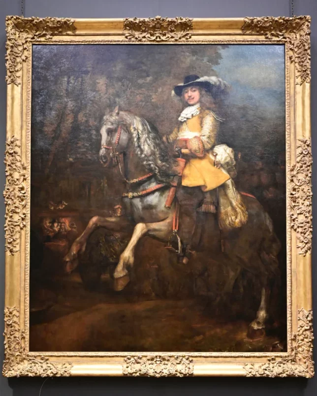 《Portrait of Frederick Rihel on Horseback》的年代約為1663年,主角是阿姆斯特丹的富商–Frederick Rihel,讓我印象深刻的不是其技法(都已經看了那麼多林布蘭的畫),而是其尺寸,這是我第一次看到真人大小的林布蘭繪畫。當然,這鎮館之寶讓人驚豔的不僅僅是尺寸,作為林布蘭晚期畫作的代表作,不管是人物的神情、布料的質地皆是栩栩如生,背景也依稀可見遊行隊伍,恰巧呼應騎馬的主角。