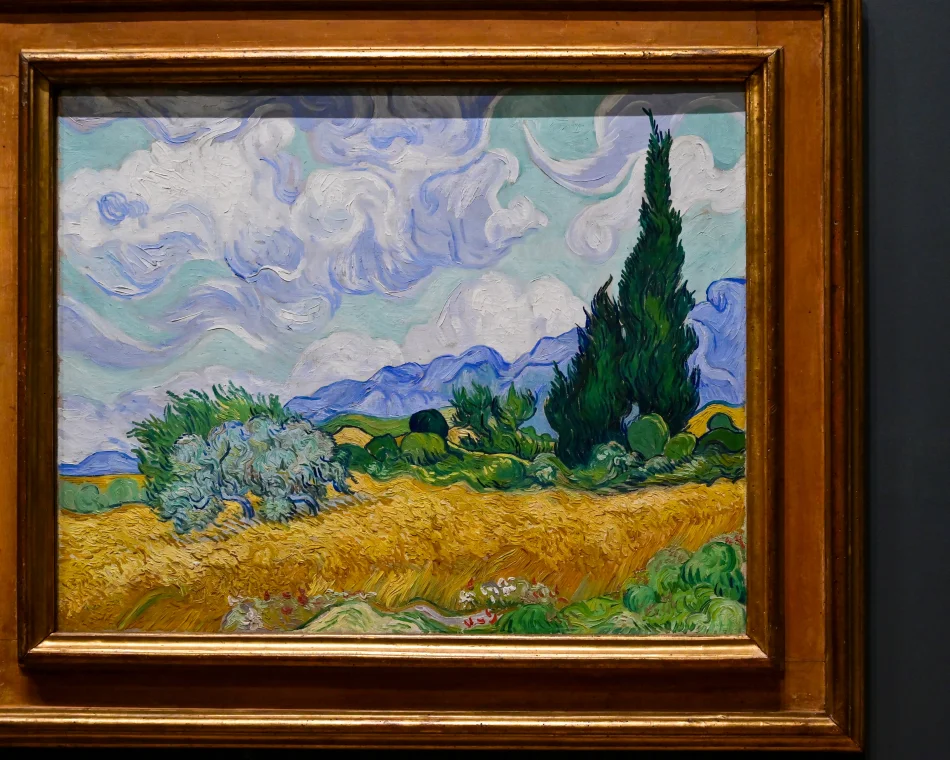 - 梵谷在聖雷米的醫院休養時的作品,雖然他當時因為精神不穩定而入院,在這幅畫倒是看不出來,畫風頗明亮、寧靜